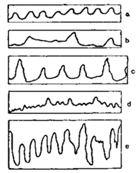Кривые дыхания при различных эмоциях (по Ж. Дюма)